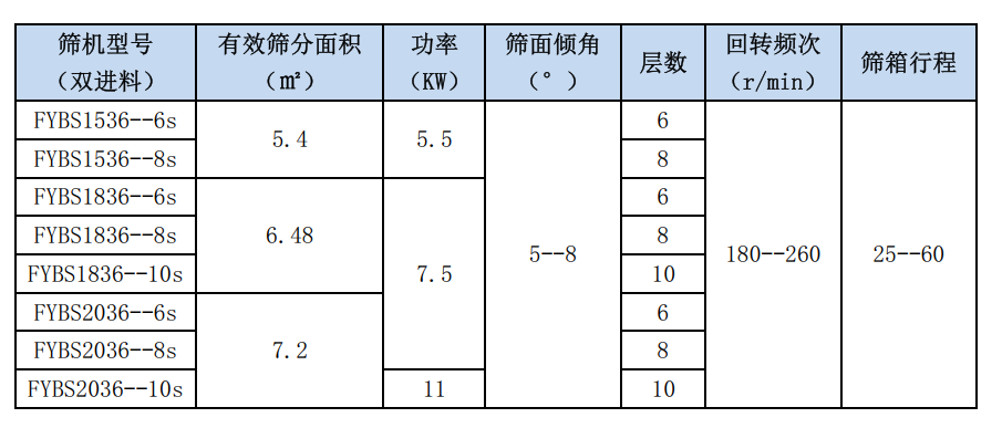 FYBS方形搖擺篩的工作原理為:篩機(jī)啟動(dòng)之后,篩機(jī)搖動(dòng)體即篩箱在慣性力的作用下作前后往復(fù)運(yùn)動(dòng),篩箱帶動(dòng)篩面作周期性搖動(dòng),從而使篩面上的物料隨篩箱一同作定向跳躍式運(yùn)動(dòng)。期間,小于篩面孔徑的物料通過篩孔落到下層,成為篩下物,大于篩面孔徑的物料經(jīng)連續(xù)翻滾跳躍運(yùn)動(dòng)后,從排料口排出,完成篩分工作。